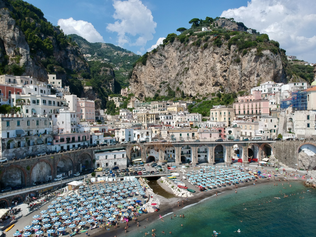 Direct naast Amalfi vind je het dorpje Atrani. Op slechts 5–10 minuten lopen via een kustpad of een tunnel kun je dit dorpje bereiken. Het is zó dicht bij dat veel mensen het per ongeluk overslaan, zonde, want het is een van de meest authentieke en sfeervolle plekjes aan de Amalfi kust. Ik kon het hier niet laten om toch nog even met de drone een mooie foto te maken. Nog een weetje dan: In Atrani is de film “The Equalizer 3” opgenomen. Kijk deze film en ik weet zeker dat je direct op vakantie wil naar dit dorpje.