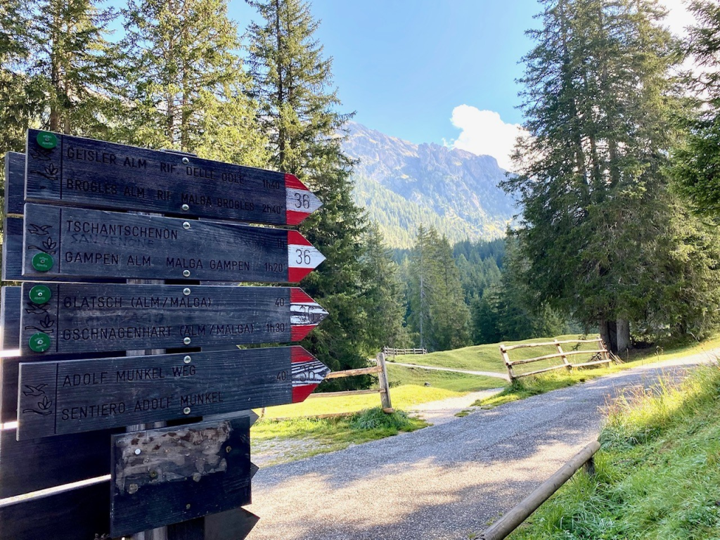 Vandaag staat er weer een wandeling op het programma. En wel een hele mooie als we de verhalen moeten geloven. We gaan vandaag een wandeling maken naar de Geisleralm – Rifugio Odle gelegen in het Villnösstal – Val di Funes. De Geisleralm – Rifugio Odle is een hele mooie berghut gelegen in een grote bergweide. We parkeren de camper bij 🚐 parkeerplaats Malga Zannes. Voor een paar euro mogen we hier de hele dag staan. Vanuit deze parkeerplaats vertrekt de wandeling naar de Geisleralm – Rifugio Odle. Deels loopt de wandeling over de Adolf Munkel Trail. Deze trail loopt onderaan de voet van het Geisler/Odlemassief. Vanuit de parkeerplaats is het ongeveer 4,5 km naar de Geisleralm – Rifugio Odle. Direct na de start gaat het al snel bergop. Denk maar zo: eenmaal boven volgt de terugweg, en die gaat bergaf. Eenmaal boven loop je door prachtige bergweides en bereik je uiteindelijk de berghut. Op dit terras is het goed toeven. Alvast bekijken wat er op het menu staat? Zie deze link:🥩 Geisleralm – Rifugio Odle.