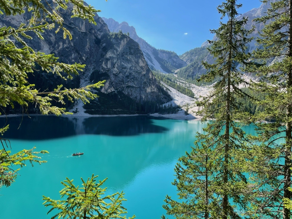 Als je onderstaande foto bekijkt, heb je deze vast wel eens ergens voorbij zien komen. De Pragser Wildsee – Lago di Braies is met recht een van de mooiste bergmeren van Europa. Wij bezochten dit meer met de bus. Deze vertrekt voor de camping en brengt je voor een paar euro op en neer. Voordeel van de bus is dat je geen parkeerproblemen ondervind, omdat het hier in de zomer erg druk kan zijn met dagjesmensen. De bus brengt je vanuit de camping in ongeveer 20 minuten naar het meer toe.
