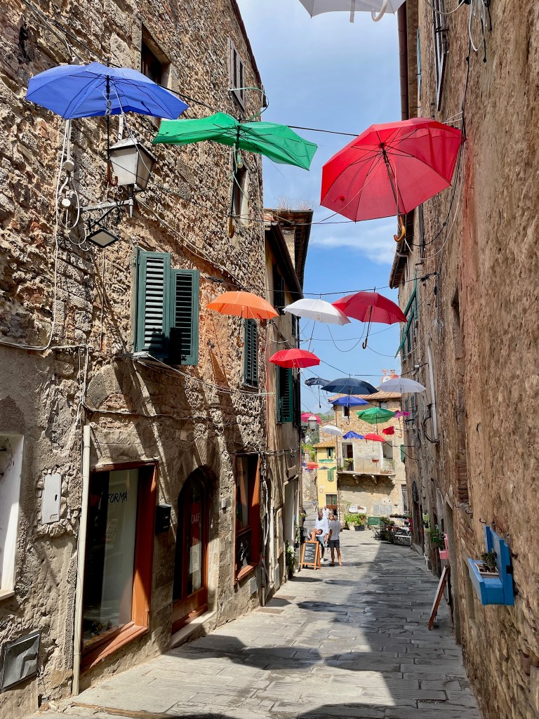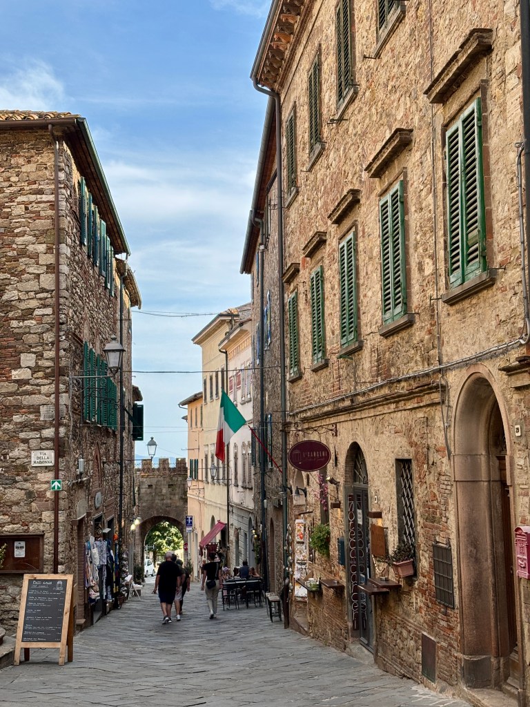 Hoog boven ons bevond zich de Rocca Aldobrandesca, een middeleeuwse burcht die nog steeds over het dorp waakt. We lieten ons gewoon meevoeren door de straatjes, zonder plan.